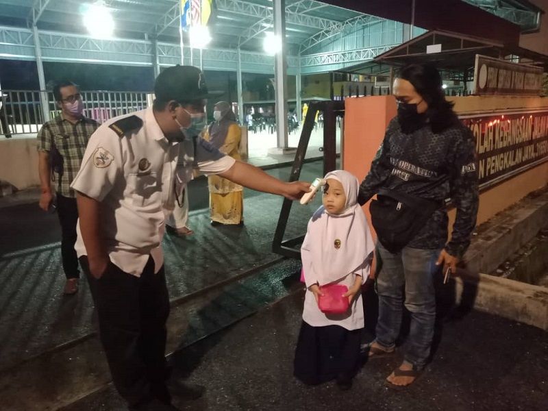 Sepanjang tinjauan juga dapat lihat pihak sekolah bersungguh-sungguh mengikuti prosedur operasi standard (SOP) yang disediakan dengan mengambil suhu pelajar selain sanitasi meja dan kerusi.