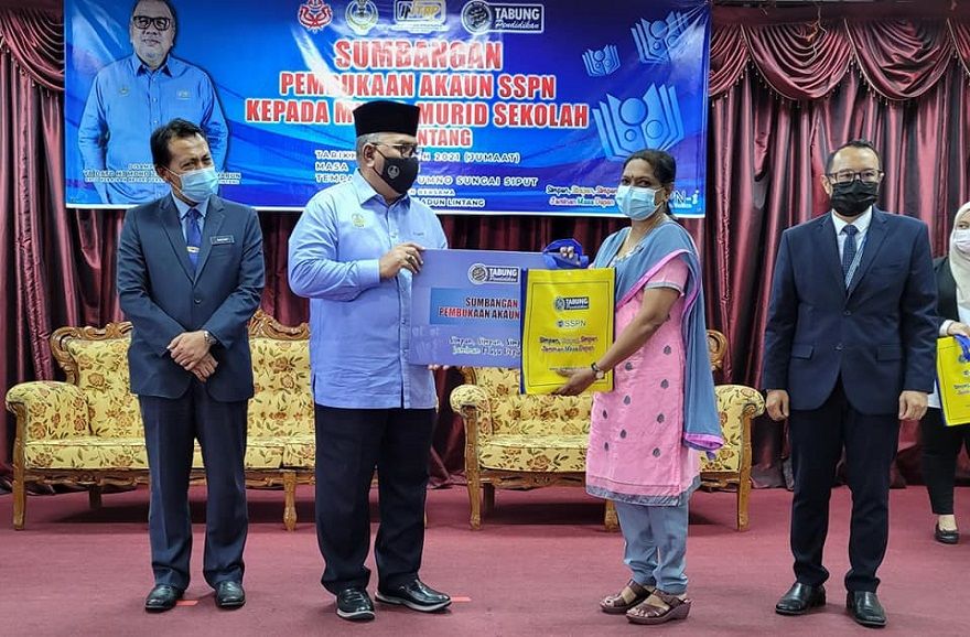 SUNGAI SIPUT - Seramai 500 murid-murid sekolah rendah dari 30 buah sekolah di kawasan Lintang dekat sini menerima sumbangan pembukaan akaun Skim Simpanan Pendidikan Nasional (SSPN-i) tajaan kerajaan negeri menerusi Yayasan Perak dan Pusat Khidmat Ahli Dewan Undangan Negeri (ADUN) Lintang semalam.