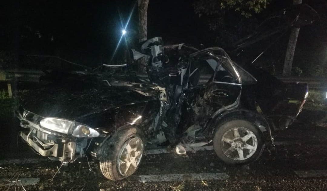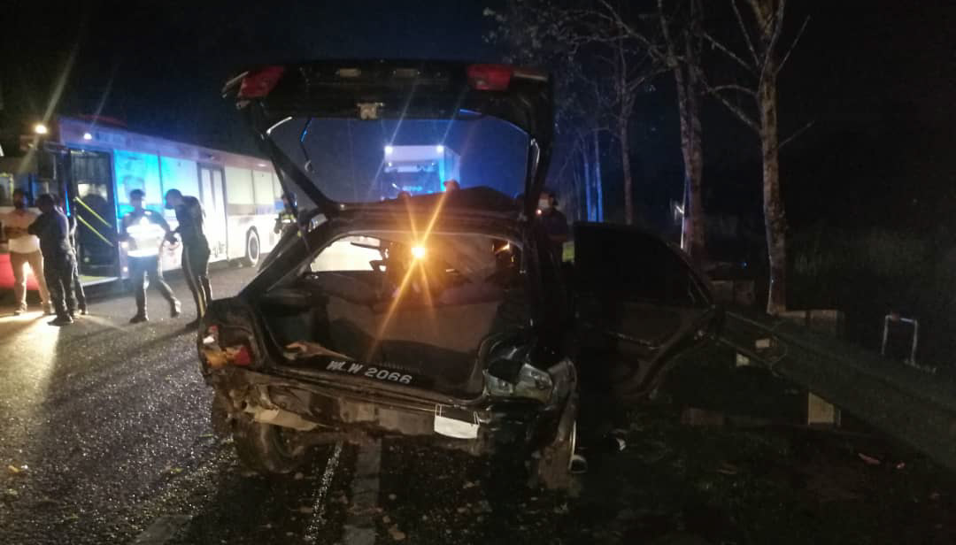 "Kemalangan dipercayai berlaku apabila kereta berkenaan hilang kawalan lalu terbabas dan melanggar sebatang tiang.