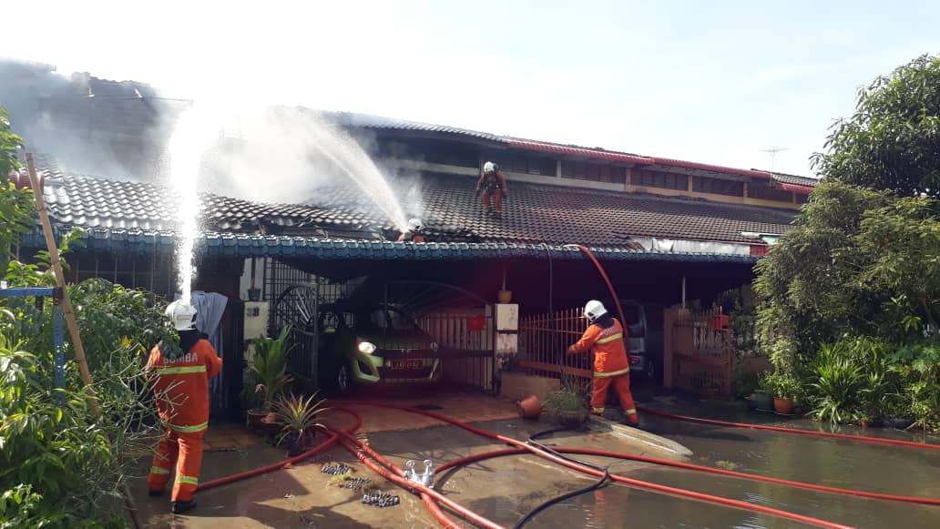 "Kerja-kerja pemadaman dilakukan di bahagian hadapan rumah dan bumbung menggunakan pancutan air daripada jentera bomba dan saluran bantu mula," ujar jurucakap tersebut.