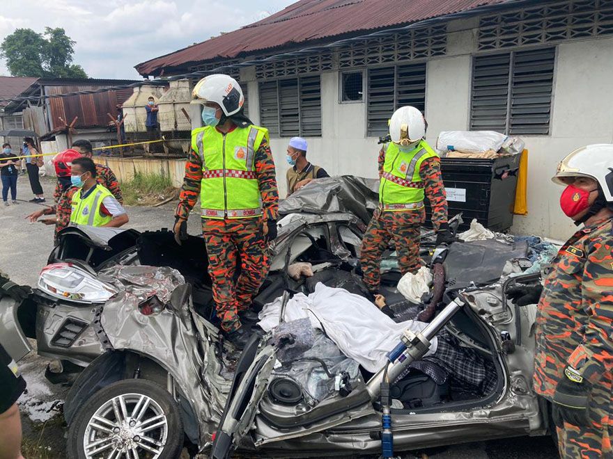“Sebaik tiba kita mendapati kemalangan membabitkan sebuah kereta dan lori treler di mana terdapat mangsa tersepit dalam kereta tersebut.