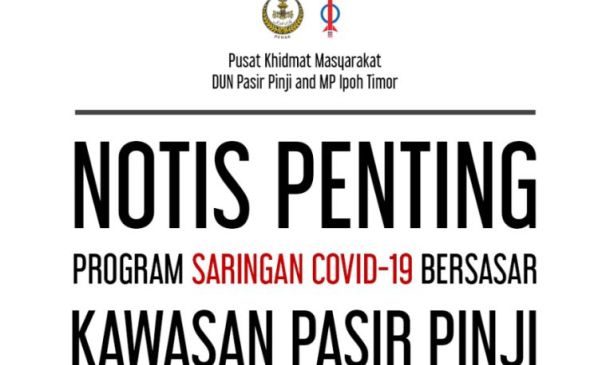 Pusat Khidmat Dun Pasir Pinji adakan saringan Covid-19 bersasar pada 5 dan 6 Jun berikutan Pegawai Khas positif Covid-19