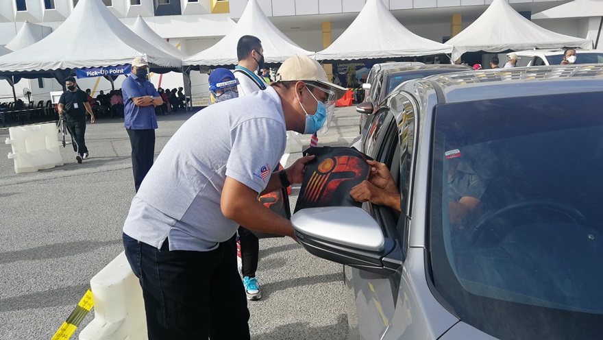 IPOH - Sebanyak 10,000 Jalur Gemilang diedarkan secara serentak secara pandu lalu di Pusat Pemberian Vaksin (PPV) serta sekatan jalan raya (SJR) di 13 daerah seluruh negeri Perak, hari ini.