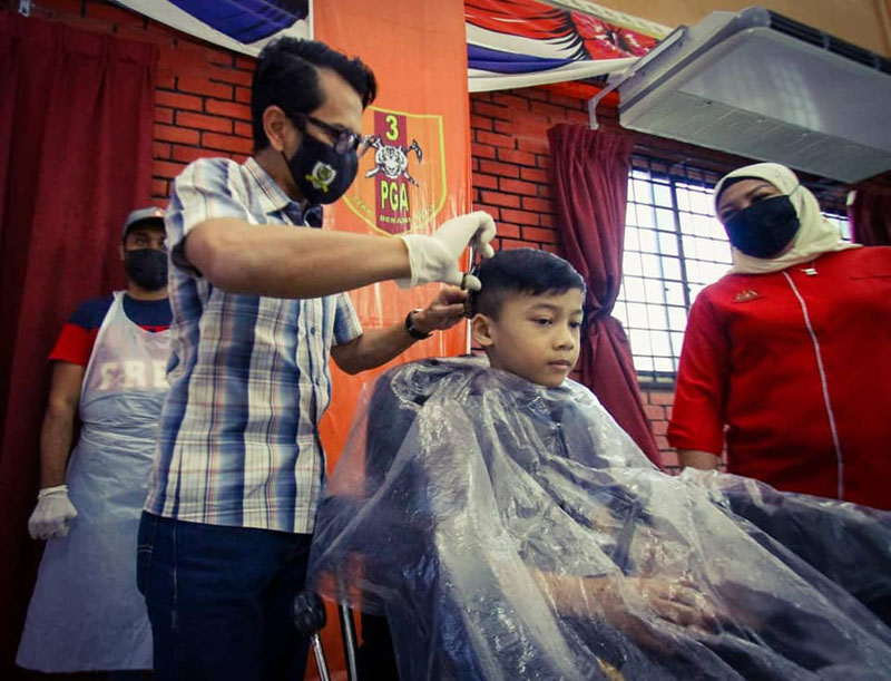 Selain sumbangan pakaian, Pusat Khidmat Ahli Parlimen Tambun turut menyediakan khemah untuk menggunting rambut secara percuma kepada murid-murid lelaki.