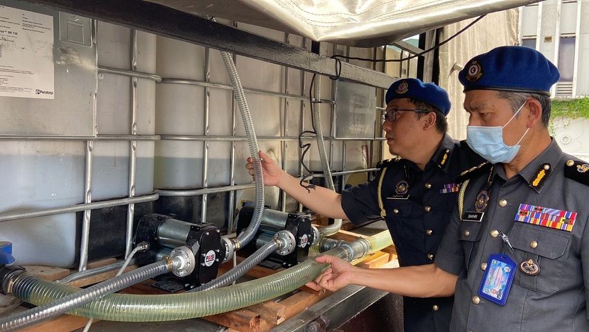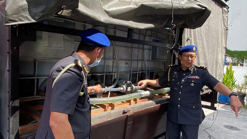 "Pemeriksaan lanjut ke atas lori mendapati terdapat empat buah tangki fiber yang disyaki berisi minyak diesel disimpan di dalam di atas lori berkenaan.