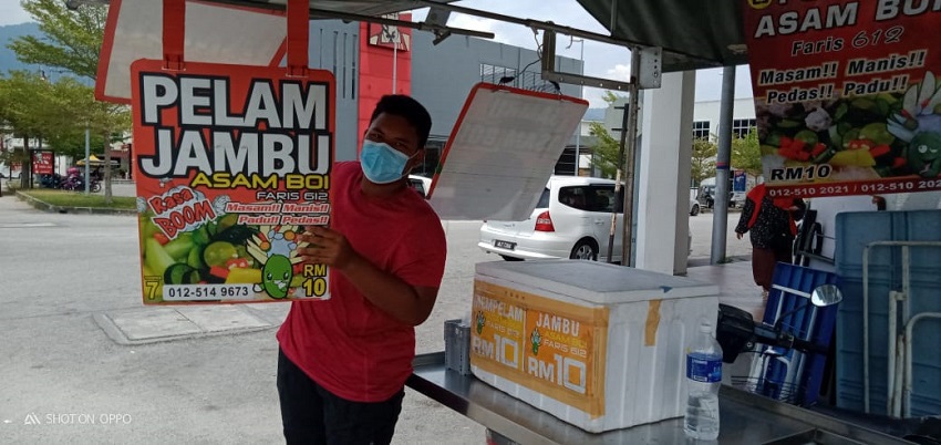 “Setakat ini produk Jambu Asam Boi Faris 612 ada dijual di hadapan pintu masuk Mydin Mall Meru, Taman Perpaduan, Bercham selain di depan bank ini,” katanya.