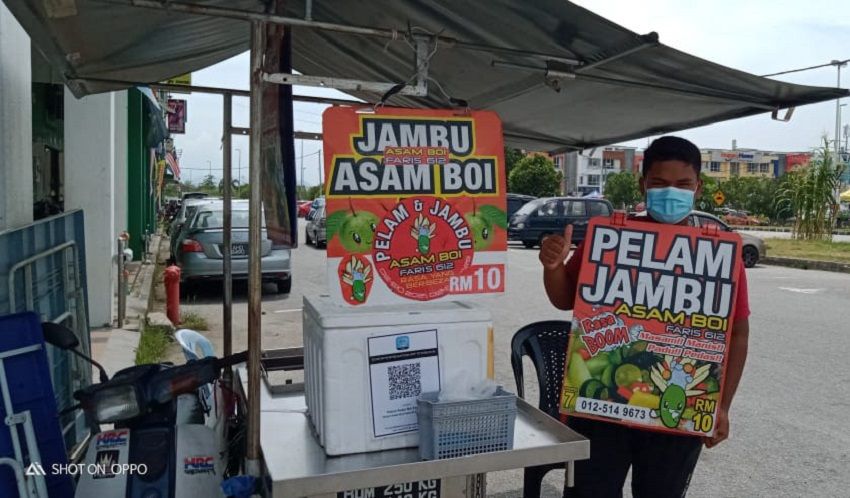 Ujar Faris produk yang dijualnya adalah jambu batu dan mangga, yang diperisakan dengan serbuk asam boi.