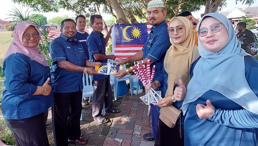 MANJUNG - Parti Bersatu Bahagian Lumut menyemarakkan sambutan Hari Kebangsaan ke-65 dengan mengedarkan Jalur Gemilang kepada penduduk dan komuniti setempat sekitar daerah ini minggu lalu.