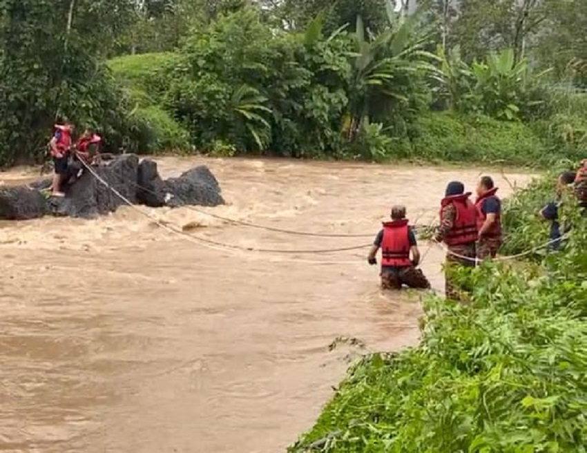 "Komander operasi mengarahkan anggota menyeberangi sungai membawa tali seterusnya melakukan tindakan menyelamatkan mangsa," ujar jurucakap tersebut.