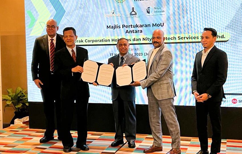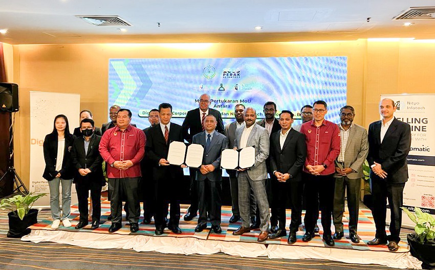 Upacara pertukaran Mou telah disempurnakan oleh Ketua Pegawai Eksekutif Digital Perak, Mohamad Suhaimi Mohamad Tahir bersama-sama Country Head Nityo, Rajasekhar Gummadi disaksikan oleh Menteri Besar Perak, Dato’ Seri Saarani Mohamad dan Pengerusi Jawatankuasa Komunikasi, Multimedia dan NGO, Mohd Azlan Helmi Helmi.