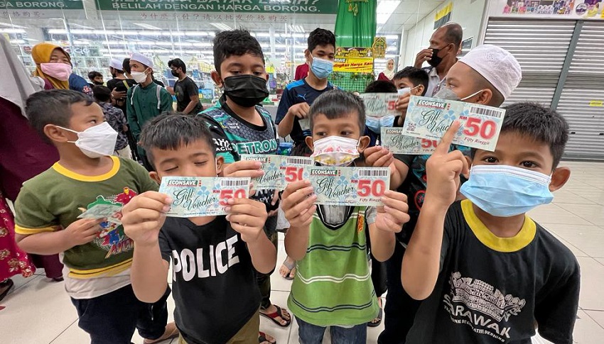 “Terima kasih pihak pengurusan Econsave yang bermurah hati memberi sumbangan untuk kami membeli serba sedikit persiapan untuk menyambut hari raya.