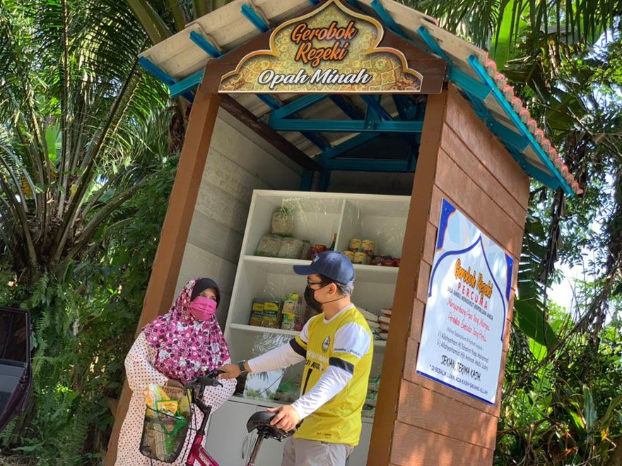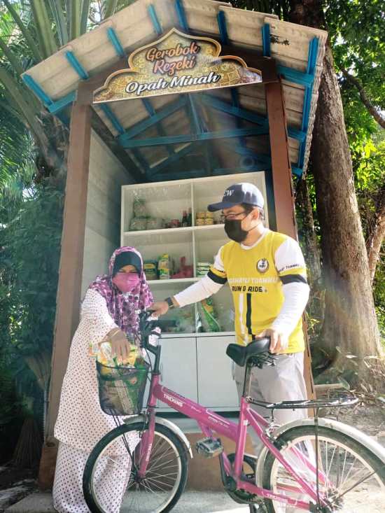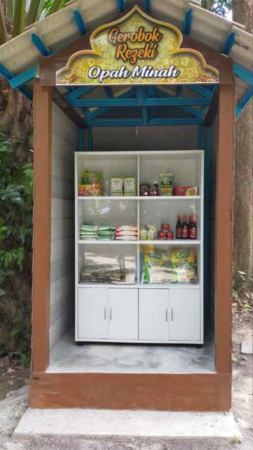 "Kami bermuafakat menyediakan barangan seperti beras, tepung, serbuk uncang teh, gula dan sebagainya di gerobok rezeki untuk diberikan secara percuma.