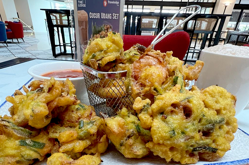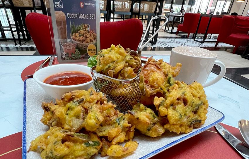 Apa kata anda luangkan masa ke Restoran The Lodge, Hotel Travelodge untuk menikmati cucur udang bersama teh tarik.