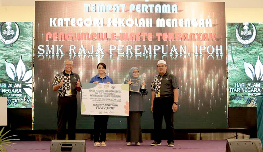 Sekolah tersebut ialah SMK Raja Perempuan, Jalan Batu Bungkal menjadi juara bagi kategori Sekolah Menengah bagi Pengumpulan e-Waste Terbanyak.