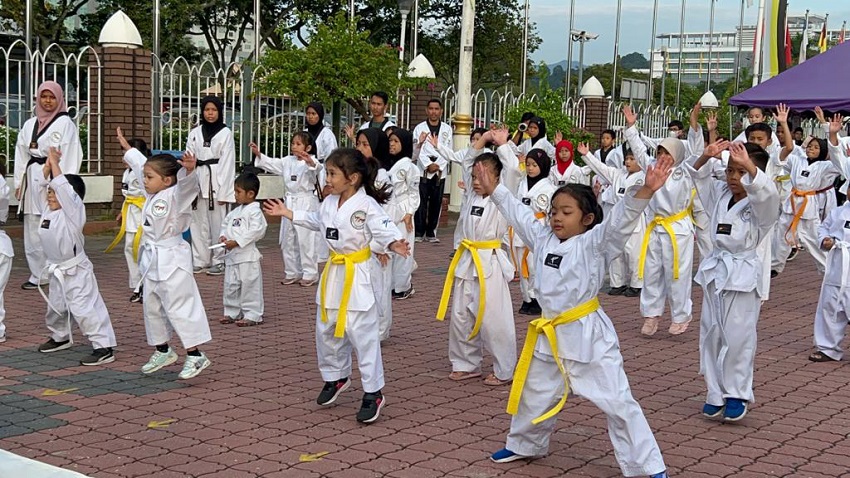 Sementara itu, seramai 60 orang kanak-kanak berusia 3 hingga 14 tahun mempersembahkan teknik seni mempertahankan diri Taekwondo di bawah jurulatih Saiful Baharin Abdul Majid yang juga merupakan pesara MBI.