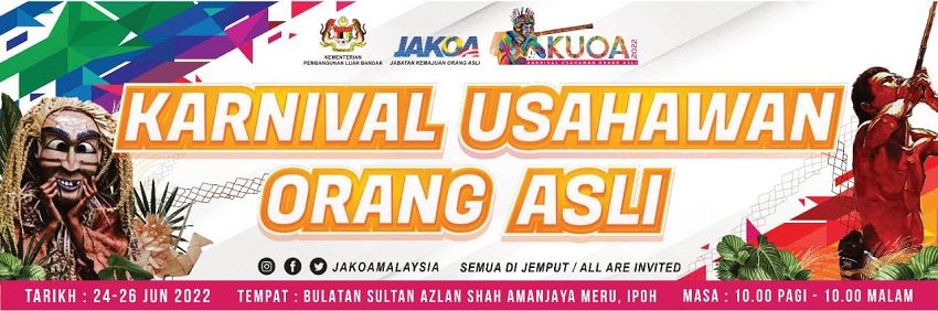 Jabatan Kemajuan Orang Asli (JAKOA) mengambil inisiatif menganjurkan KUOA2022 yang berlangsung selama tiga hari bermula pada 24 hingga 26 Jun 2022 bertempat di Bulatan Sultan Azlan Syah Amanjaya Meru, Ipoh.