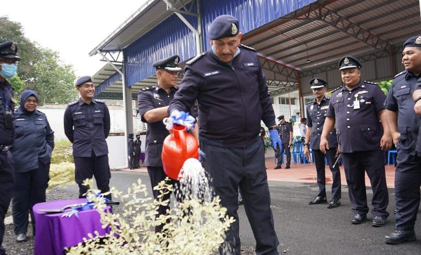 Bersempena lawatan, Mior Faridalathrash turu menyempurnakan penanaman pokok di pekarangan Dewan Terbuka IPD Gerik dan penyampaian cenderahati.