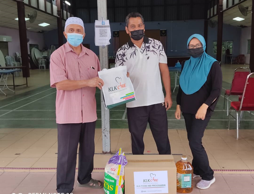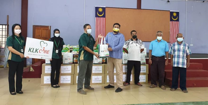 KLK Senior Mill Adviser, Johari Salleh turut menyampaikan 83 kotak berisi makanan kering yang merupakan keperluan asas termasuk pelitup muka, sabun dan cecair pembasmi kepada kesemua wakil ketua kampung yang terbabit.