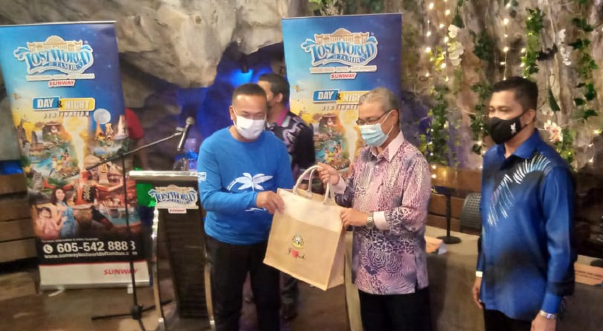 Datuk Bandar Ipoh, Datuk Rumaizi Baharin@Md Daud bersama Pengurus Besar Lost World of Tambun, Nurul Nuzairi Mohd Azahari menyantuni lawatan berkenaan dalam satu Majlis Minum Petang di Lost World of Tambun (LWoT) di sini, pada Khamis.