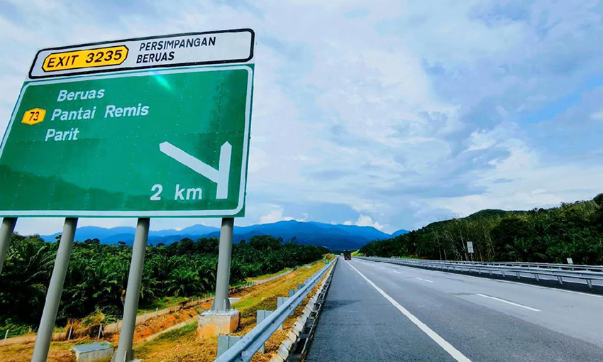 “Bermula dari Hutan Melintang, laluan lebuhraya ini akan menelusuri negeri Perak melalui beberapa persimpangan susur keluar iaitu Teluk Intan, Lekir, Sitiawan dan Sitiawan Utara yang menjadi pintu masuk ke Pulau Pangkor.