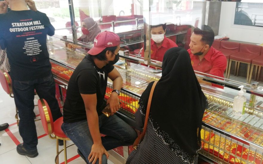 "Kedai kami dibuka setiap hari dari jam 10 pagi hingga 6.30 petang dan sempena pembukaan semula pada hari ini, kami menjual emas 916 tanpa upah dengan harga cuma RM258 per gram sahaja.