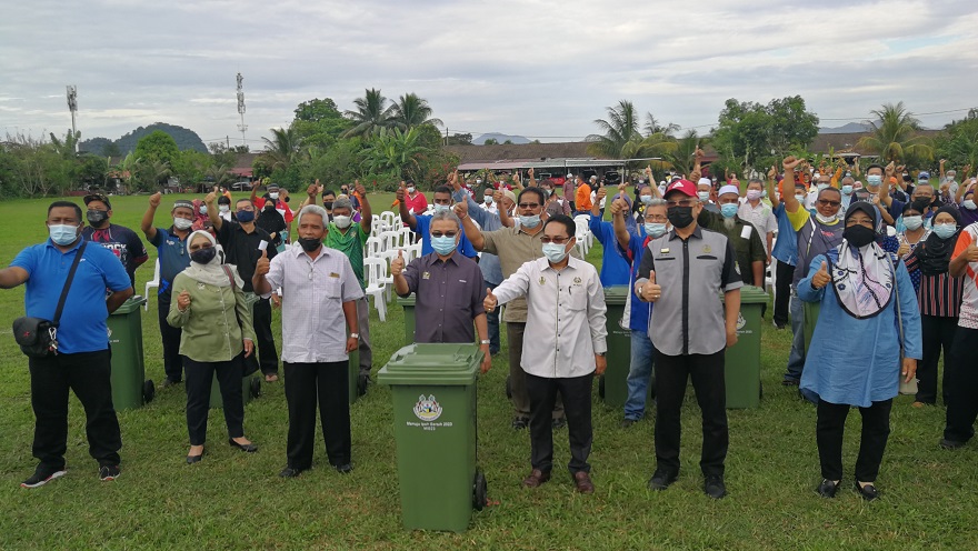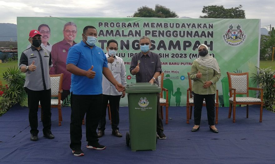 “Hari ini, kita mengedarkan 1,150 tong sampah kepada penduduk sekitar Bandar Baru Putra Bercham manakala MUMSB pula mengedarkan 2,000 tong sampah lengkap dengan mikrocip yang dibekalkan syarikat tersebut di kediaman sekitar Zon Meru.