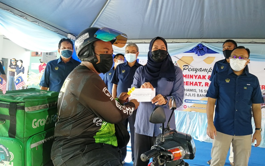 Pada majlis itu, Nolee Ashilin turut menyampaikan 200 baucer minyak petrol bernilai RM5 setiap satu kepada penghantar makanan.
