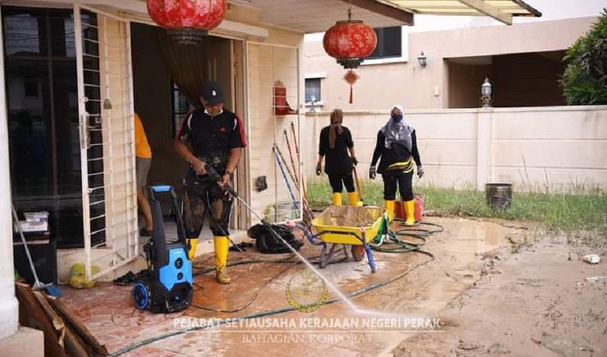 Barisan sukarelawan yang diketuai Penolong Setiausaha, Bahagian Pengurusan Sumber Manusia, SUK Pera, Minha Julabidin Ismail, telah membantu membersihkan beberapa buah rumah yang terjejas banjir di sekitar Taman Hulu Langat Jaya, Selangor.