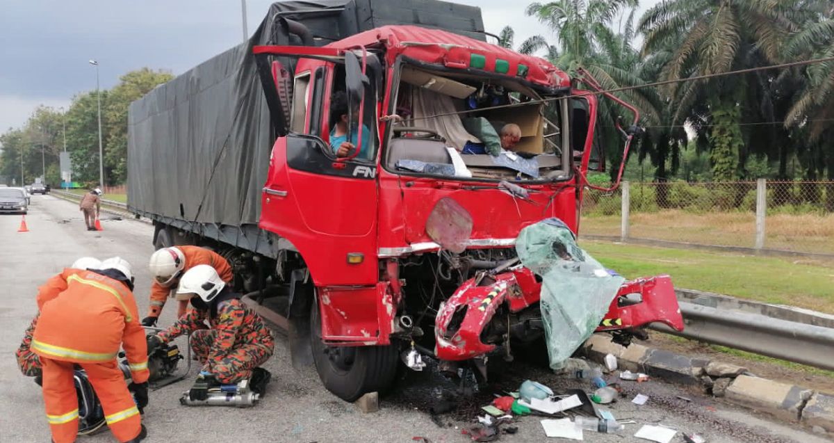 "Semasa bomba tiba, pemeriksaan mendapati dua mangsa lelaki tersepit pada bahagian pemandu dan penumpang lori," ujar jurucakap tersebut.
