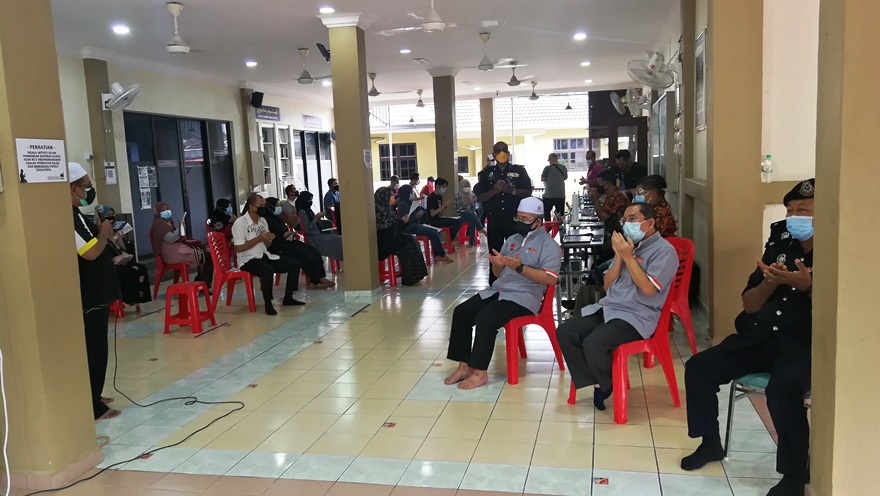 IPOH - Seramai 250 ahli kariah Masjid Abdul Rahman Auf (Maaruf) termasuk keluarga mereka menerima suntikan vaksin dos pertama melalui program Pemberian Vaksinasi Outreach yang dilaksanakan Pusat Pemberian Vaksin (PPV) Klinik Briged Utara Pasukan Gerakan Am (PGA) Ulu Kinta di masjid tersebut di Taman Rapat Koperasi, hari ini.