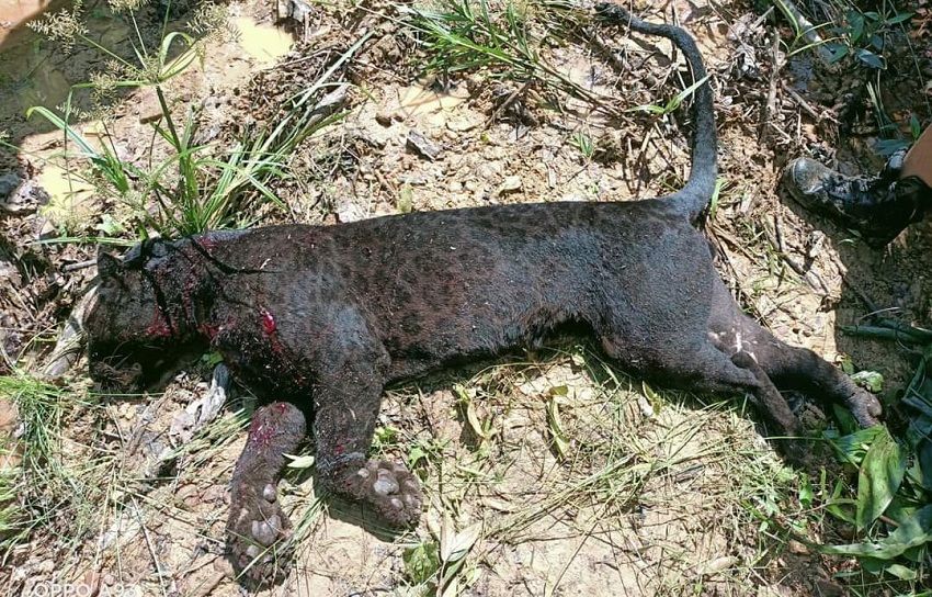 "Pemeriksaan pada bangkai hidupan liar berkenaan mendapati tujuh kesan tetakan pada peha kiri (satu) dan seutas jerat dawai yang tersangkut pada pergelangan kaki belakang sebelah kanan.