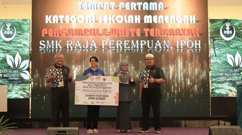 IPOH - Sekolah Menengah Kebangsaan (SMK) Raja Perempuan Ipoh (RPS) mencipta kejayaan tersendiri apabila muncul juara Pengumpulan E-Waste Terbanyak (kategori sekolah menengah) sempena Hari Alam Sekitar Negara 2022 Peringkat Negeri Perak.