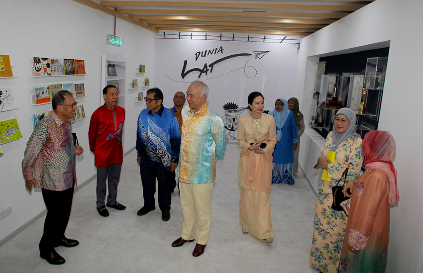 Sultan Nazrin turut dan Tuanku Zara turut berkenan melihat pameran galeri yang menghimpunkan karya lukisan Lat serta melawat replika Rumah Lat.