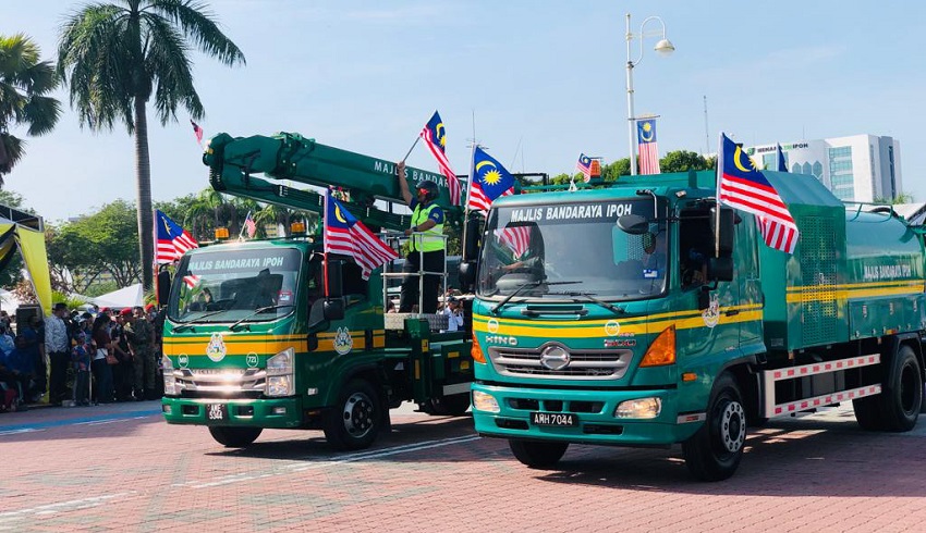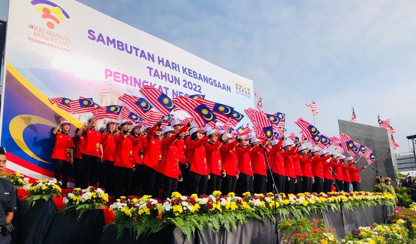 IPOH: Sultan Perak, Sultan Nazrin Muizzuddin Shah dan Raja Permaisuri Perak, Tuanku Zara Salim berkenan berangkat pada Majlis Sambutan Hari Kebangsaan 2022 peringkat negeri Perak di Dataran Bandaran di sini pada Rabu.