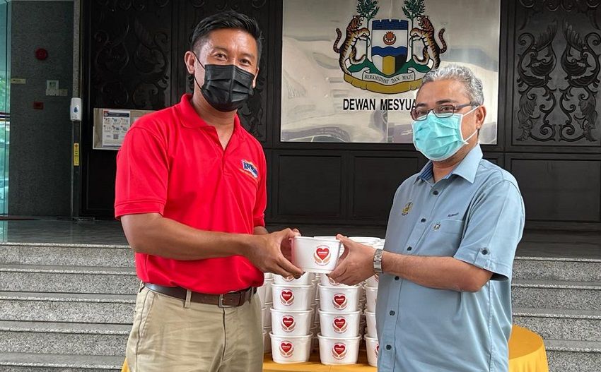 Ipoh- Datuk Bandar Ipoh, Dato’ Rumaizi Baharin hari ini menerima 200 bungkusan bubur lambuk dari pihak pengurusan Sunway Berhad sempena bulan Ramadan.