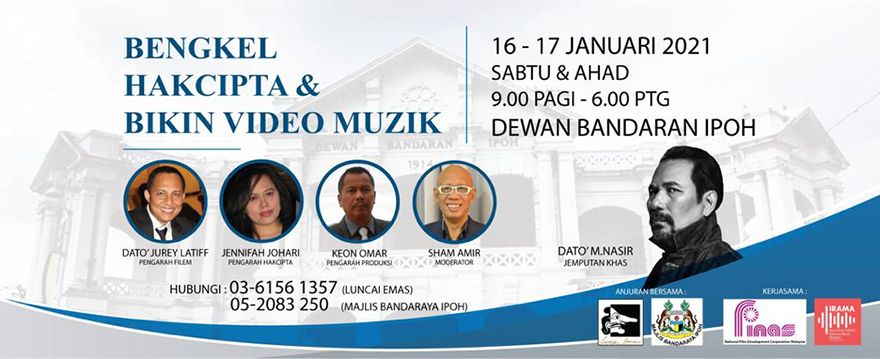 Majlis Bandaraya Ipoh dan Luncai Emas Sdn Bhd dengan kerjasama FINAS dan Konsortium Industri Rakaman Muzik Malaysia (IRAMA) akan menganjurkan Bengkel Hakcipta dan Bikin Video Muzik.