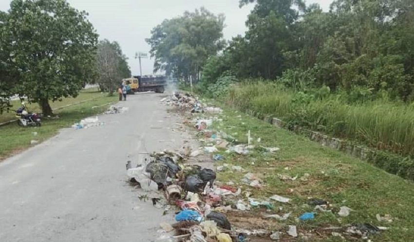 TAIPING - Sikap penting diri segelintir masyarakat yang tiada kesedaran sivik membuang sampah sehingga mengotorkan persekitaran menyebabkan Jalan Susur Paduka Setia 2, RPT Paduka Setia, Kampung Taiping sini ditutup.