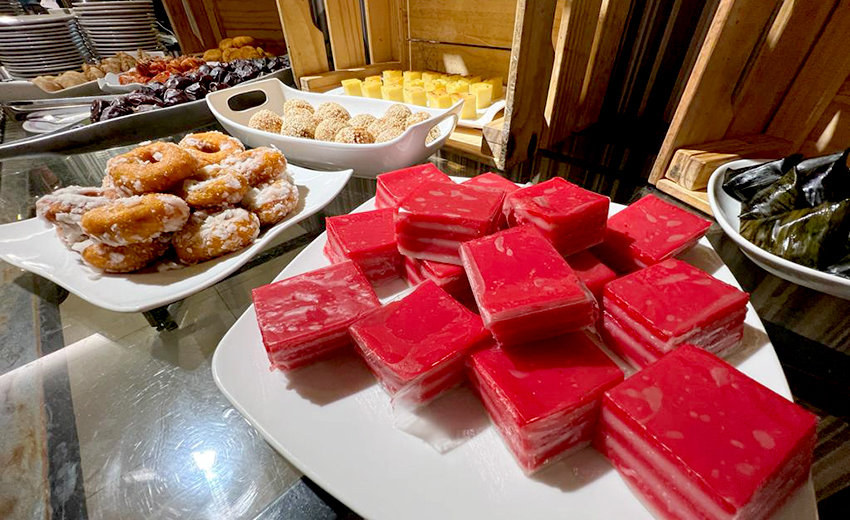 “Pengunjung juga boleh menikmati sajian pelbagai jenis kerabu, kuih muih tradisional melayu, bubur lambuk, marshmallows cokelat, mee goreng, kwetiau goreng dan pelbagai lagi’, katanya kepada Peraktastic sempena Bufet Ramadan “Bazaar Ramadan Lagi..? di Hotel Impiana di sini semalam.
