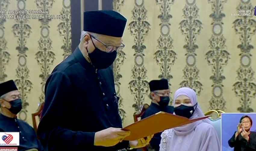 KUALA LUMPUR - Datuk Seri Ismail Sabri Yaakob hari ini mengangkat sumpah sebagai Perdana Menteri kesembilan di Istana Negara petang tadi di hadapan Yang di-Pertuan Agong, Al-Sultan Abdullah Ri'ayatuddin Al-Mustafa Billah Shah.