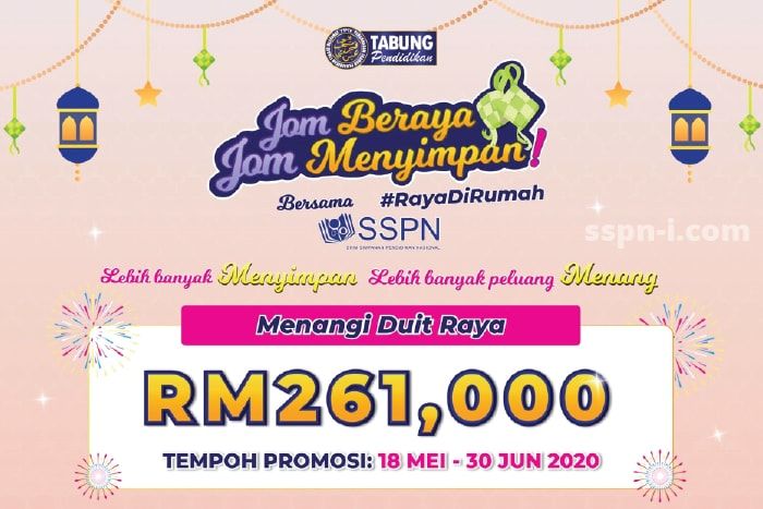 IPOH - Pendeposit Skim Simpanan Pendidikan Nasional (SSPN) kini berpeluang untuk memenangi hadiah sebanyak RM261,000 menerusi Kempen Jom Beraya Jom Menyimpan.