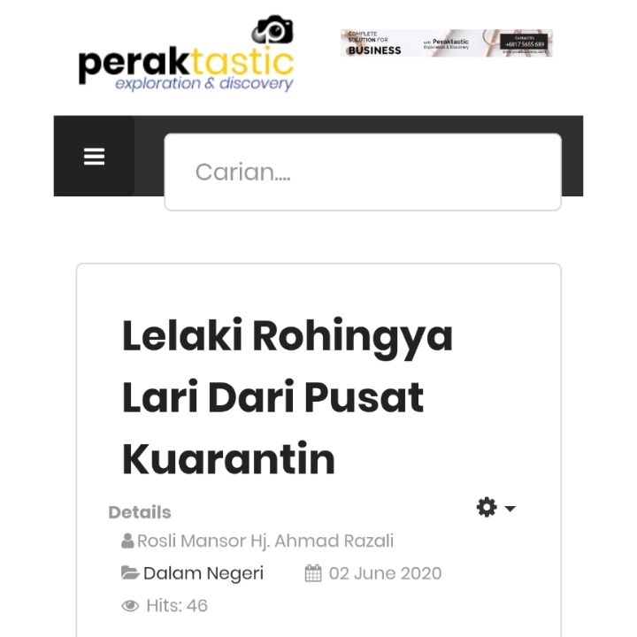 Rohim sebelum ini, ditahan polis Muallim dan dimasukkan ke Hospital Slim River kerana mempunyai gejala Covid-19.