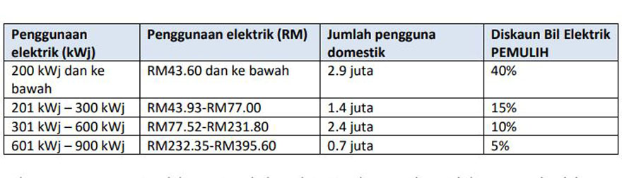 “Bagi kedua-dua kategori pelanggan domestik dan PKS, pengiraan Diskaun Bil Elektrik Pemulih adalah berdasarkan jumlah penggunaan bulanan dari 1 Julai hingga 30 September ini dan TNB sedang mengambil langkah perlu bagi memastikan pelaksanaan diskaun berjalan lancar.