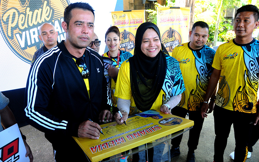 Hadir sama Setiausaha Bandaraya, Majlis Bandaraya Ipoh (MBI), Zuraina Kamarul Ariff, Ketua Eksekutif Tourism Perak, Nurmalis Musa, Pengurus Besar LWOT, Nurul Nuzairi Mohd Azahari dan pelakon popular tanahair Zul Ariffin sebagai duta Perak Virtual Run 2020.