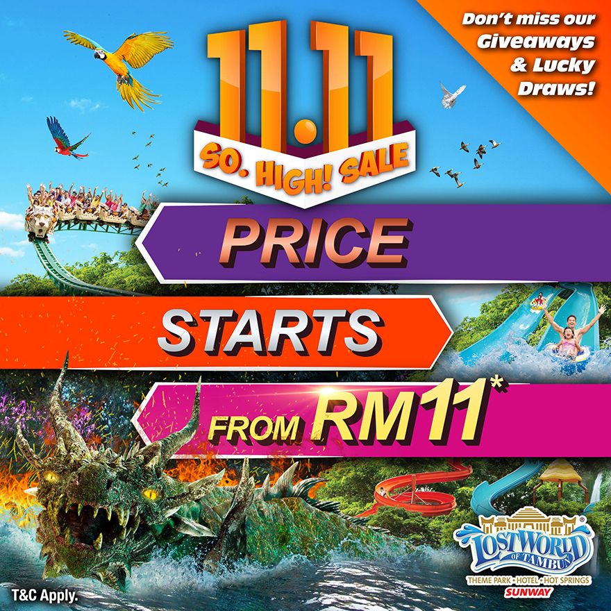 Ipoh- Taman tema Sunway Lost World Of Tambun (SLWOT) kini akan menawarkan pakage promosi bermula dari RM11.00 kepada orang ramai pada 11 Nov 2020 menerusi laman sosialnya.