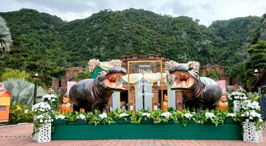 Majlis perkahwinan yang berkonsepkan Melayu tradisional lengkap dengan bunga manggar dan hantaran itu diadakan di Hippo Kingdom, taman tema air Lost World of Tambun (LWOT) di sini, lewat petang semalam.