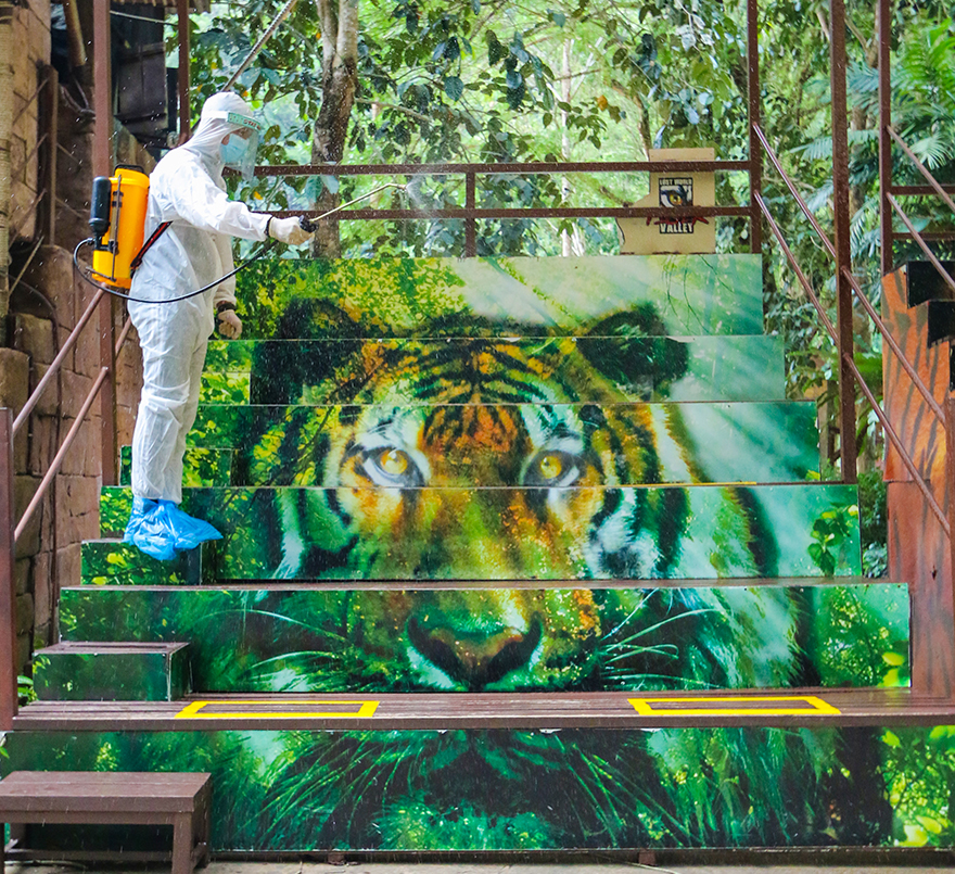 “Selain kita mematuhi SOP yang ditetapkan oleh Kementeri Kesihatan Malaysia (KKM), kita juga memperketatkan lagi SOP antaranya pengunjung diwajidkan memakai topeng muka eksklusif yang direka khas, memakai pembersih tangan sebelum berinteraksi dengan haiwan dan mencuci tangan dengan sabun di singki yang ditentukan selepas setiap kontak.