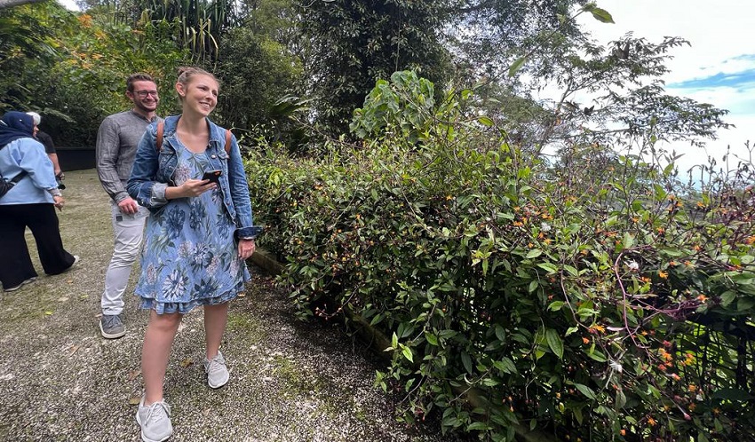 Perjalanan kami terhenti seketika di Tapak Kupu-Kupu. Sekumpulan kupu-kupu pelbagai spesis menarik perhatian sepasang pelancong dari Jerman yang turut berkunjung ke sini.