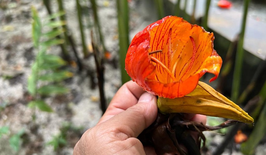 Selain itu, kami terpesona dengan bunga African Tulip berwarna oren yang menakung air sebagai sumber minuman untuk monyet-monyet di situ.