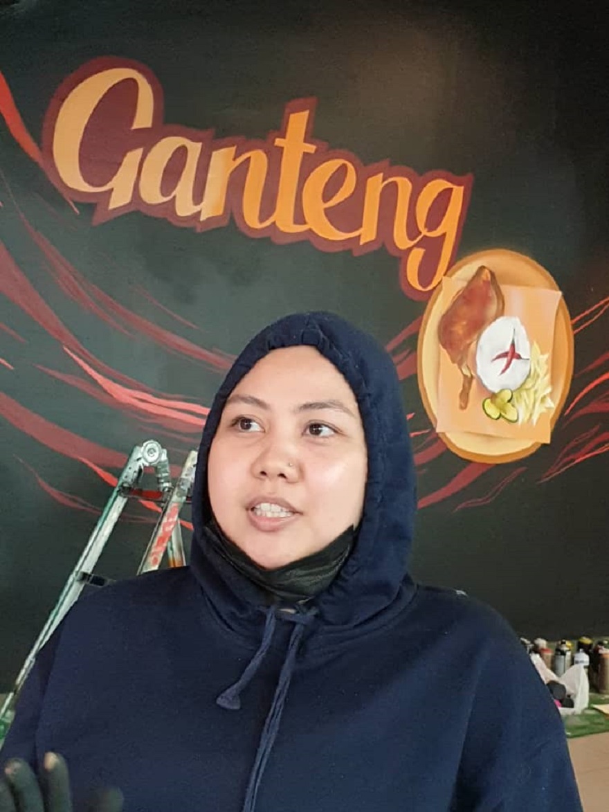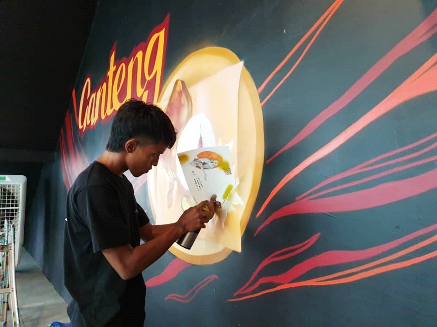 Kedua-dua anak muda ini adalah tulang belakang dalam menghasilkan lukisan mural di restoran Ayam Gepuk Ganteng di Bandar Meru Raya di sini.