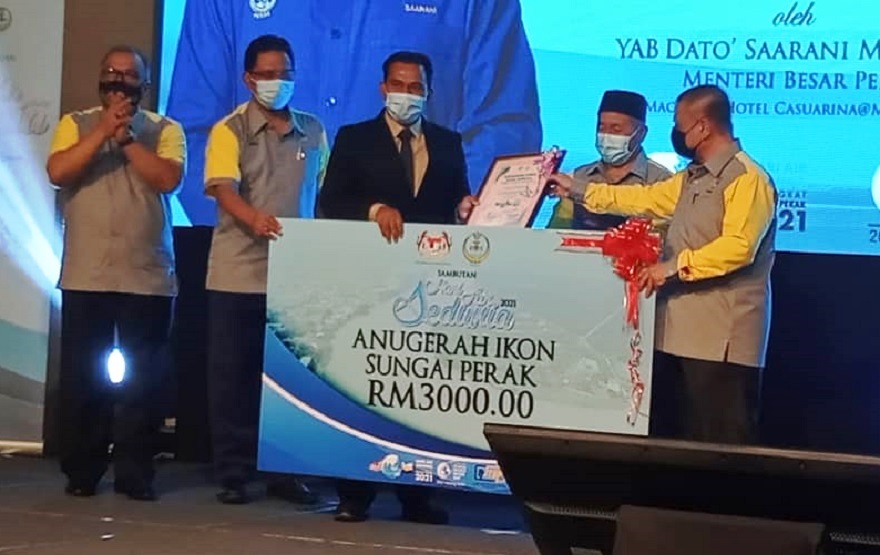 IPOH – Kegigihan seorang guru membersihkan sungai daripada sampah sarap secara sukarela untuk mengelakkan banjir dihargai apabila menerima Anugerah Ikon Sungai Perak 2021 pada Sambutan Hari Air Peringkat negeri di Hotel Casuarina hari ini.